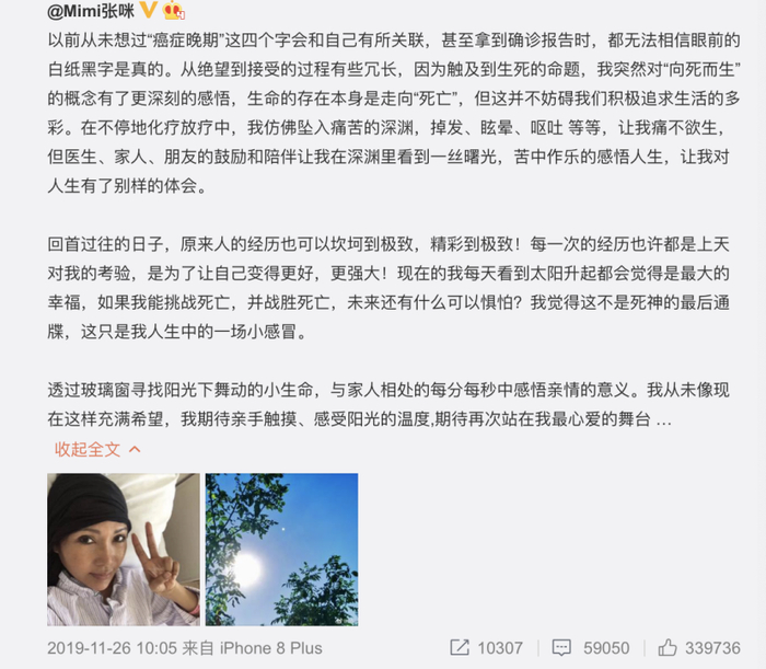 历经300多天的治疗,张咪从一个癌症晚期患者,成功转危为安,再次回到了台前。