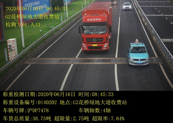 类似地,执法人员对上海宣畅物流有限公司所有的沪DP7478车辆也进行了立案调查。据悉,该车辆于6月16日8时45分途经G2京沪高速花桥绿地大道收费站,车辆轴数4轴,车货总质量38.75吨,超限2.75吨,超限率7.64%。