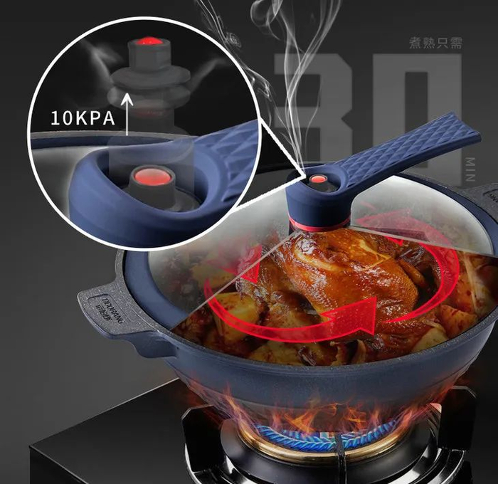 锅盖设有微压阀门,内设压力微循环系统,可以模拟高压锅烹煮,食物更快熟透,且保温效果可达2小时。