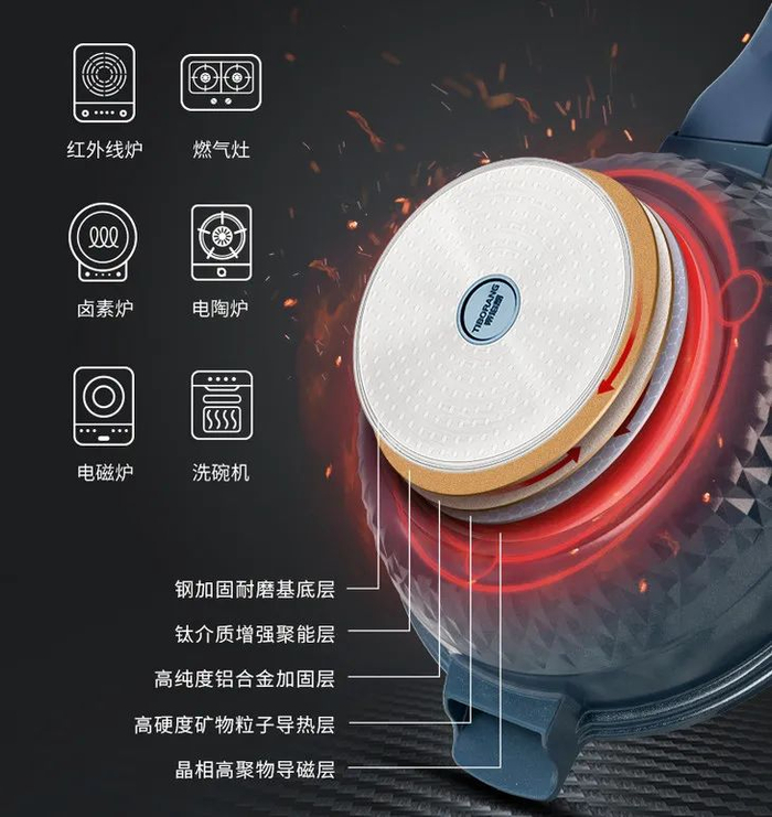◎矿物质增强保护层:添加天然矿物质成分,锅体更耐磨;