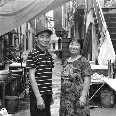 万佐成夫妇每天很早起来炸油条。“每天6点钟就有人借炉子做饭。刚开始我只有六个炉子,每天有十几个人来,后面人越来越多,我就买了二十多套厨具和煤球炉。多的时候,一天有三四百人来炒菜。”