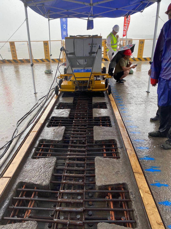 “南京五桥主梁采用的新型材料——粗骨料活性粉末混凝土,具有强度高、造价低、自重轻的优点。这种材料被应用在钢混组合梁桥面板,减轻了桥梁的重量,让桥型显得更为轻巧,同时有效规避了钢桥面板的疲劳开裂及铺装难题,还减少了沥青铺装的费用。”中交二航局南京五桥项目负责人种爱秀介绍道,因此南京长江第五大桥也是世界上首座采用粗骨料活性粉末混凝土桥面板的组合梁斜拉桥,在结构技术上不断刷新着世界纪录。