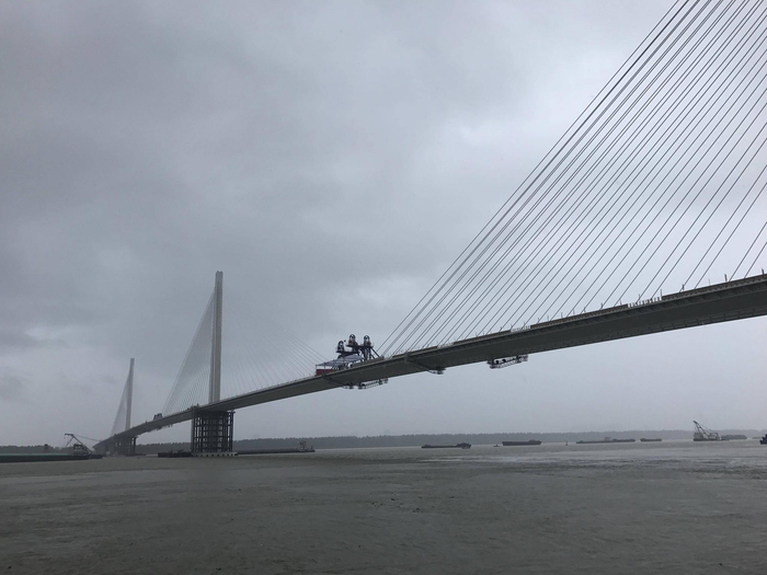 这座桥的建设深受国内外桥梁界关注。“从索塔到组合梁,这是世界第一座真正意义上钢混组合结构的大跨径桥梁。”南京市公共工程建设中心主任武焕陵介绍,南京长江二桥索塔为混凝土结构,长江三桥索塔为全钢结构,南京长江第五大桥集两者所长,既有钢塔的耐久性,同时又造价适中。这一“混搭”组合背后是一系列技术创新。建设团队与清华大学、西南交通大学等联手攻关,钢壳-混凝土组合索塔关键技术,这一成果已获2019年中国公路学会科学技术特等奖。