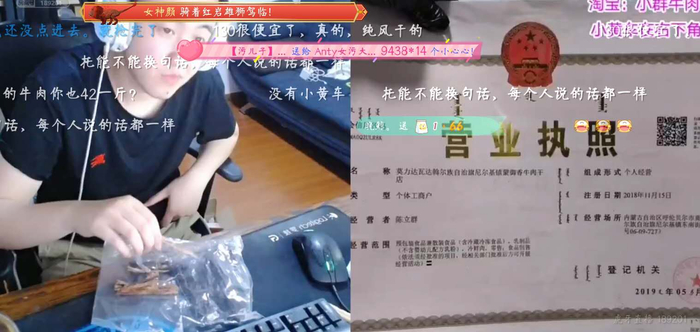 网上购物,食品安全问题一直是大家担心的问题。虎牙四号福利社是来自内蒙古的人气主播小群,出售的牛肉干全是新鲜牛肉风干而成,现场带领霸哥和水友们参观了牛肉干生产现场,干净、卫生、肉质新鲜,光看着照片都知道牛肉肉质不错。小群现场展示了所有营销证件,小群更是放话:如果到货后牛肉跟直播时不一样,全额退款,童叟无欺!食品安全保障即保证所提供的商品实际质量与直播时表明的商品质量状况相符,为虎牙直播带货的规范发展提供一道坚硬的屏障。