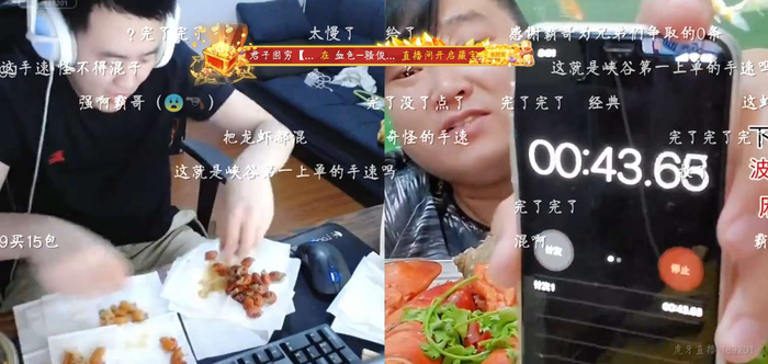 不同于传统直播带货,主播在直播间简单的试吃解说,虎牙“618游乐园”游戏主播霸哥现场亲试龙虾评价,商品好不好凭良心说话,并且挑战一分钟剥虾挑战,吃货燕子出难题,一分钟剥十二个小龙虾即可完成砍价任务,多剥一只虾,9.9元的波龙即刻上架三十五只限时抛售。霸哥用尽毕生手速,成功剥了19只虾,吃货燕子豪气上架50只9.9元还包邮的大波龙,优惠力度太大,结果刚说完就卖完下架!