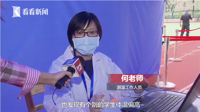 测温工作人员何老师告诉看看新闻Knews记者,这几天,在测温的时候,发现有个别的学生体温偏高,这些体温偏高的同学会让他进入留观室进行复测。留观室里有社区医生坐镇,给体温超标的考生复测,如果测下来体温仍偏高,考生就得走隔离通道,到发热考场去考试。“不重道的,普通学生是从东边的入口进,这些有温度的学生就从这儿进,我们随着这线路一直走,就到了特殊考场。”