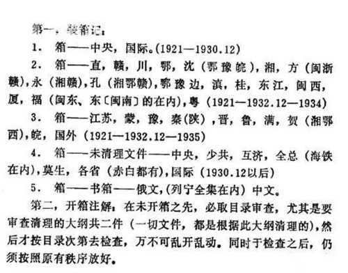 “当时三十年代没有文档这个概念,所以包括文件的库房,叫中央文库。党内很少有人知道有这么一件文库,因为它是机密程度非常高,十分保密,党的高级领导人也没有几个人知道。”原上海档案馆研究馆员朱国明介绍说:“文件和机关放在一起了,有危险。所以当时周恩来同志建议中央要成立一个专门保管档案的这么一个机构。”