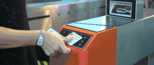 首先一张张未经过印刷的硬板车票由车票筒放入后,经过票门传送至正版位下方,此时正面印板下压,印出火车票的正面。同时,印刷完正面的车票继续被传送至翻票轮,翻转过来以后继续打印反面。
