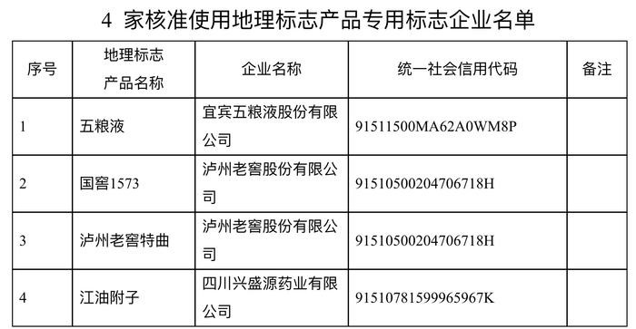 五粮液等4家企业地理标志产品专用标志使用申请获核准