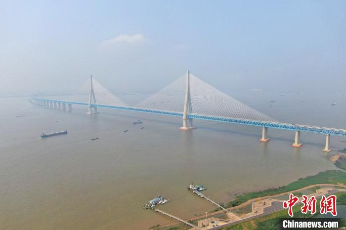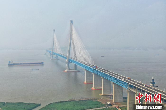 6月30日下午航拍沪苏通长江公铁大桥。 泱波 摄