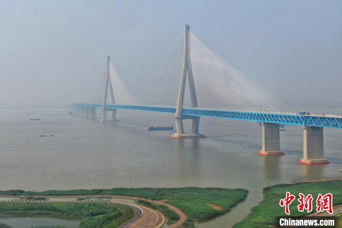 沪苏通长江公铁大桥,公铁合建跨江正桥全长5827米。主航道桥主跨1092米,为国内最大跨度斜拉桥,也是世界最大跨度公铁两用斜拉桥。其通车将标志着世界公铁两用斜拉桥主跨迈入“千米级”时代。