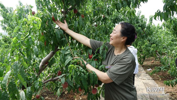 大宋家峪村村民宋红友,与其他工友一起,在桃园里割草、摘桃、分拣、包装。“一天挣100块钱,一年能挣两三万元。”宋红友对在家门口就能务工,很是满足。