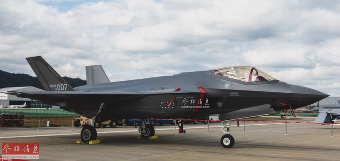 资料图片:公开展示的韩空军第7架美制F-35A隐身战机,垂尾上可见007编号。