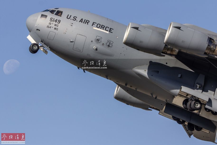 隶属于美军夏威夷国民警卫队的C-17运输机起飞特写照。