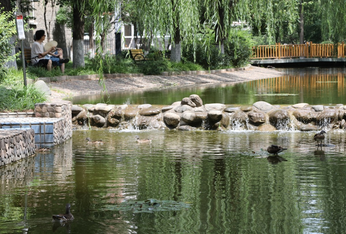 这幅生趣盎然的鸳鸯一家生活日常的画面,不在动物园里,也不在野外,竟然出现在海淀区八里庄街道美丽园小区,从5月15日起到今天已经小50天了,刚来时毛茸茸的小鸳鸯现在已经长得快追上妈妈了。