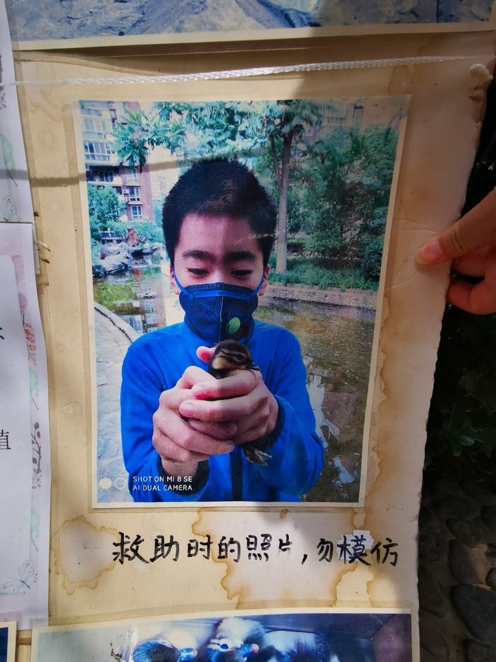 鸭妈妈和剩下的9只小鸭子终于在小区水系里重逢。救助、围观的居民松了一口气。祝克的儿子、海淀区实验小学五年一班的祝秋溢特别喜欢小动物,11岁的他连夜制作了一张宣传展板,告诉居民怎么科学对待这些野生动物。
