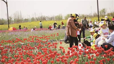 春暖花开时,芝樱花海里,高高的花坡上成片的芝樱似巨幅的花毯铺卷而下,艳丽至极;风情桃花园的大片桃林仿佛天上飘落的一大片云霞,又像是无际的粉色海洋;紫薇花堤上,千万树紫薇一眼望不到头,艳红的花儿像是列队出迎的盛装女郎,又像是一条红色的巨龙起伏着向前伸展;夏秋时节,十里荷塘的荷花们陆续绽放,翠绿的荷叶,淡粉色的荷花,嬉闹的青蛙,调皮的蜻蜓,还有东躲西藏的鲤鱼,好一幅曼妙画卷。