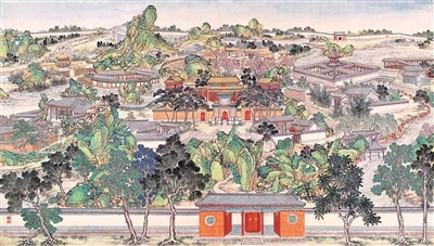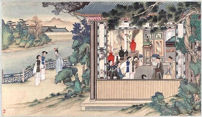 清代画家笔下的《红楼梦》人物与大观园。