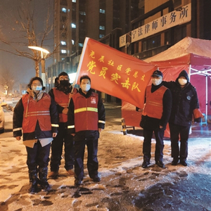 像余亮一样,党员突击队里的每个人,都迅速投入到了抗疫工作中去。比如,连夜作战,在辖区内悬挂起防疫宣传横幅;联合小区保安、物业等工作人员紧抓人员防控、场所排查主线;通过早间站岗、晚间站岗,对外来人员进行信息登记,为出入小区的所有人员测量体温;指导居民正确佩戴口罩的方法等等。
