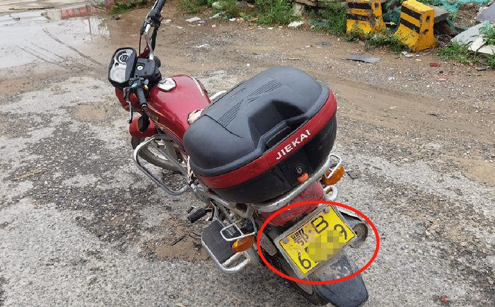 7月3日上午,昌平交通支队高速路大队整治小组在黄平路上针对摩托车违法进行专项整顿的时候,远远看见一个骑手没戴头盔,于是做好了拦截准备。等摩托车驶近一看,车子的号牌还被一张黑色胶带纸故意遮挡着。骑手被拦截下来,揭开遮挡物后,露出了一张“鄂B”车牌。这个车牌看上去倒像是真的,不过民警随后通过执法终端核查发现,这辆车最后一次年检还是在7年前,因超过三个年检周期逾期未年检,车辆已被强制注销,属于报废车辆。