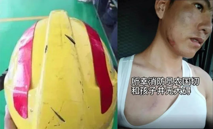原标题:灯火丨太惊险!消防员以头挡刀救男童!