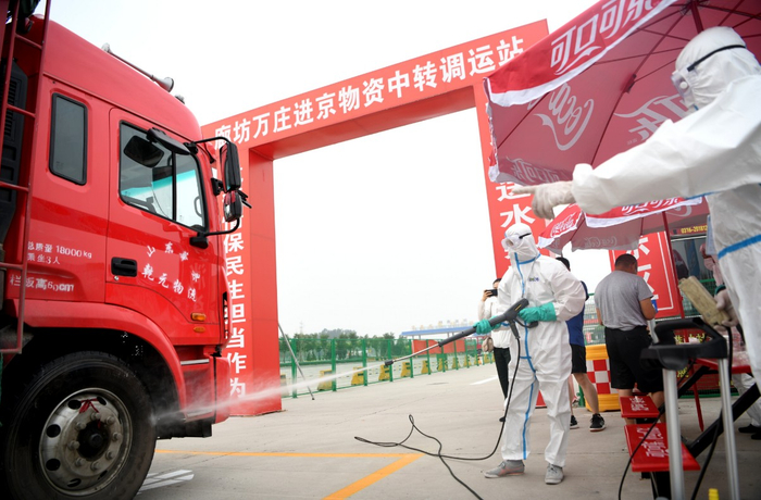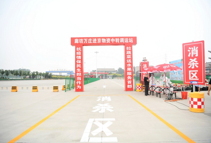 京台高速公路的万庄服务区,距离北京只有1.7公里。在新发地市场爆发疫情后,这里被赋予了一个新功能——外埠蔬菜等物资进京中转调运站。