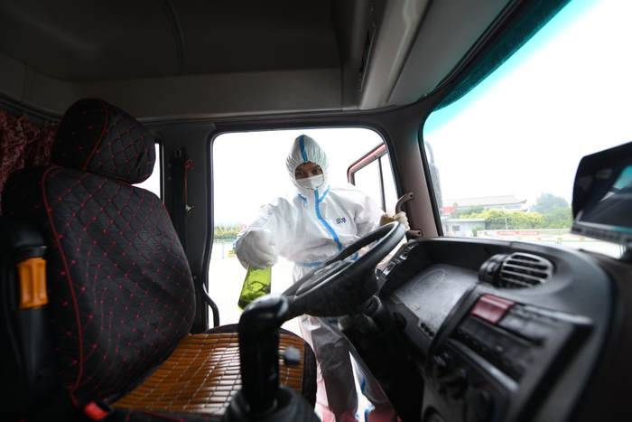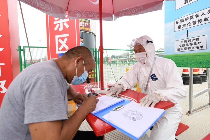 区别于其它中转站,万庄中转站的运营模式是“换人不换车”,一方面保证运输和供应,另一方面让司机返程后不被隔离。