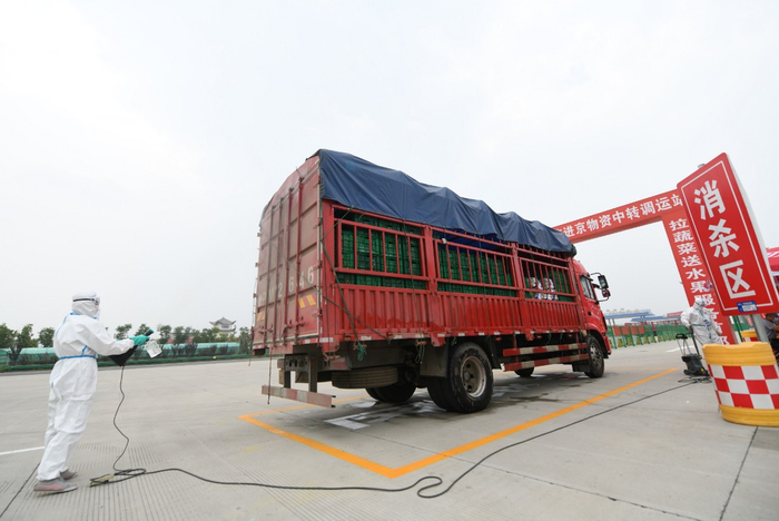 外地司机驾驶的大货车在运抵万庄后,将先测温、登记,再对车辆内外部及承载货物进行全面消杀;货车驶进中转区,司机直接进入休息区域进行休息,在此等候的中转司机则登上车,驶离中转站,一路走绿色通道将蔬果送往北京各大商超等企业;送达目的地后,中转司机再开车返回万庄,对车辆进行消毒后,原先的送货司机驾车返回发货地。“中转站预约受理外地进京运输车辆无接触中转服务。”李少陵说。