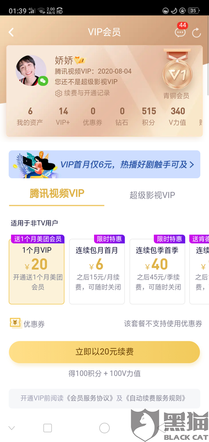 黑猫投诉:腾讯会员欺骗人