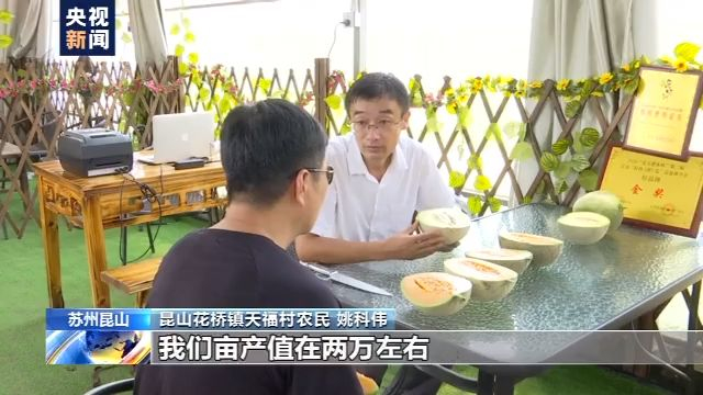 昆山花桥镇天福村农民 姚科伟:现在有我们信息化的数据,支撑了我们销售量,也是支撑了我们的价格。以前没有这个系统的时候,我们亩产值在两万左右,但是现在我们的亩产达到四万,翻了一倍。