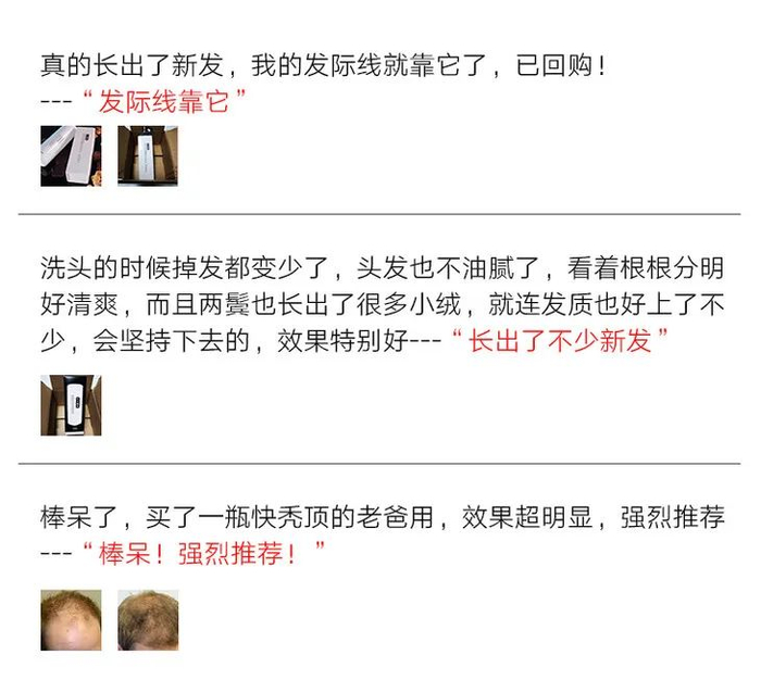 像大油头,一天不洗就油腻得可怕,现在洗一次就能清爽2~3天,头顶发旋处也变得更茂密了。