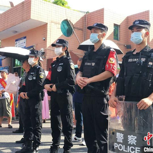 图为宁德市高级中学考点前,警方维护秩序。 叶茂 摄