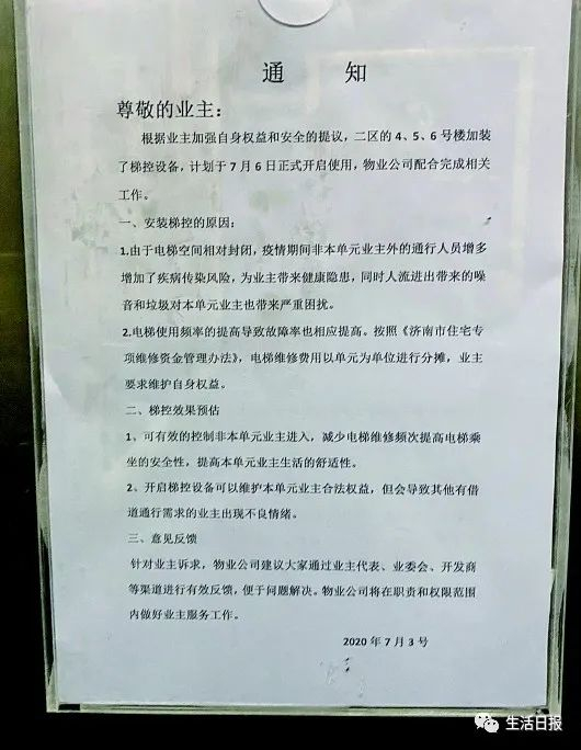 原标题:电梯"借"出麻烦事!济南一小区3个楼装梯控,别楼业主却急了…