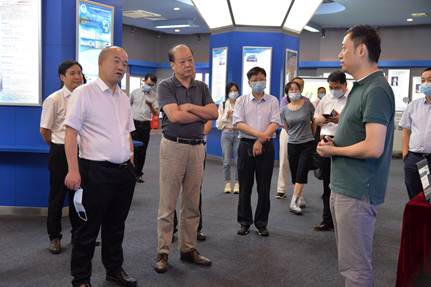在武汉大学科技园企业展示厅,有关负责人汇报了科技园在科技成果转化、企业孵化、产业培育等方面开展的具体工作。武汉天际航信息科技股份有限公司董事长邓非教授,中工武大设计研究院有限公司总经理李泰来分别就公司发展现状、业务方向、核心技术产品等进行详细介绍。