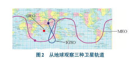 和它们不同的是,北斗系统由三种不同轨道构成:中圆轨道、地球同步轨道(GEO)和倾斜地球同步轨道(IGSO)。IGSO高度与GEO相同,但其轨道面与赤道面的倾角为55度。在地面上观察,GEO卫星是静止不动的,IGSO卫星则由南向北运动,其一天的运动轨迹如同一个大8字。