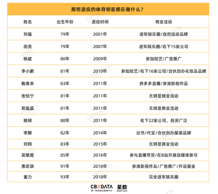不过,运动员的光环终将逐渐褪色,退役后体育明星去哪开辟第二战场呢?