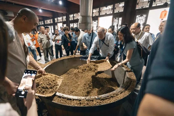 而采用地缸发酵模式,可以有效杜绝土壤中杂质和杂菌对酒醅的影响,更清洁、卫生,还能更纯粹地体现粮食的发酵风味。此外,地缸发酵还能够在酒醅发酵过程中起到良好的导温作用:发酵前期能保持酒醅的温度上升,有利于微生物的繁殖、生长和代谢;发酵后期,利于醅温降低并保持适当的温度,有助于后期香味成分的生成。在不同的季节,也起到了限制酒醅升温过快、升酸过量,使其达到微妙的平衡。