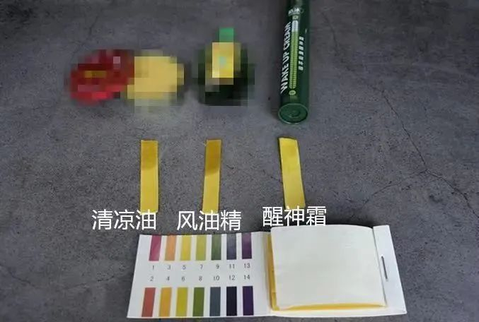 我们特意做了一个实验,把它和传统的清凉油、风油精做了酸碱度的对比,从试纸反应程度可以看到,风油精和清凉油偏酸性,容易伤害皮肤,而皓冰则更接近中性(PH大约为6),涂抹体验更温和。