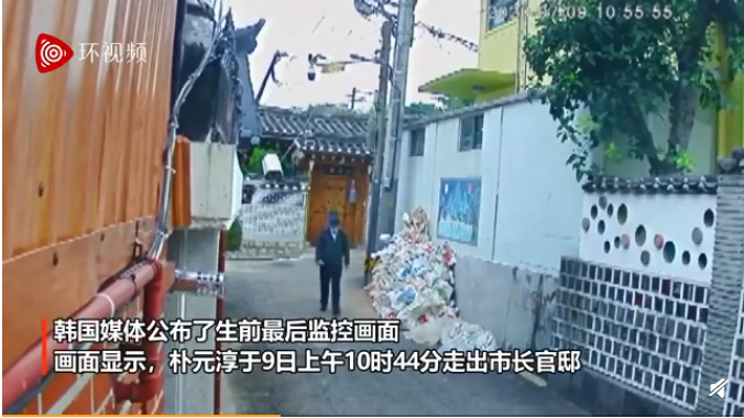 韩媒曝光了朴元淳死亡前进入卧龙公园最后的监控画面。10点53分许抵达卧龙公园。警方负责人表示,“并不刻意,看起来像是经常外出”。