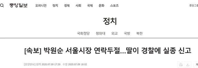 韩国《中央日报》:首尔市长朴元淳失联,女儿向警方报失踪案
