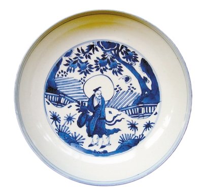 瓷盘上的“东方朔偷桃”