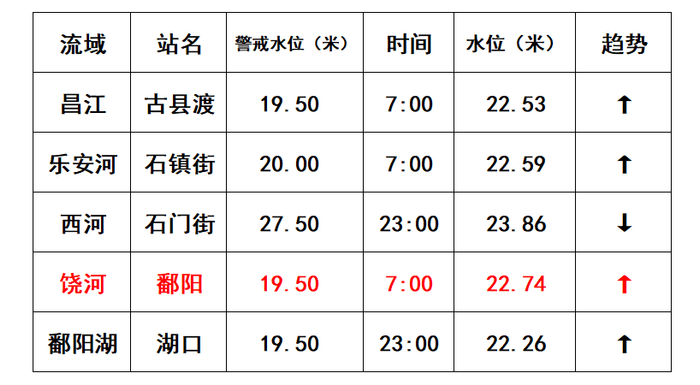 截至7月12日7:00,饶河鄱阳站水位已达22.74米,超1998年水位13cm,目前仍在上涨中。