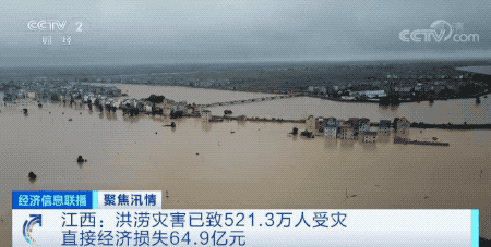 据江西省防汛抗旱指挥部的消息,江西省应急管理厅统计,截至11日17时,7月6日开始的洪涝灾害已致江西省521.3万人受灾,农作物受灾面积达455.7千公顷,倒塌房屋403户、988间,直接经济损失64.9亿元,灾情还在进一步统计核查中。