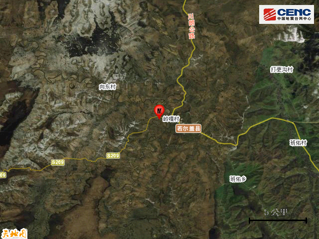 震中地形:震中5公里范围内平均海拔约3441米。