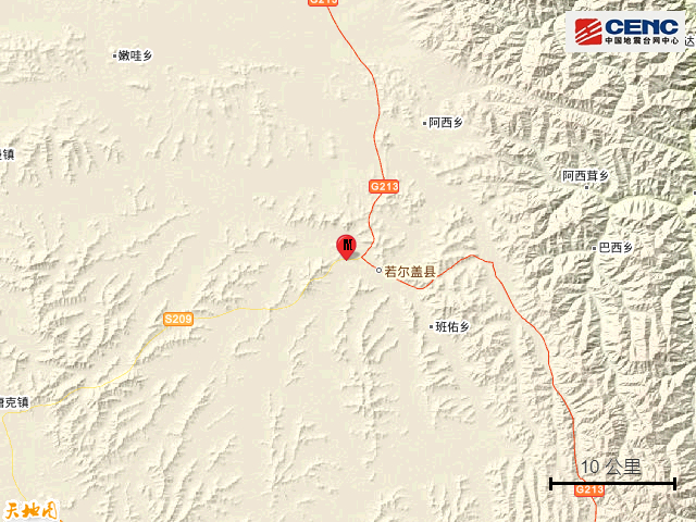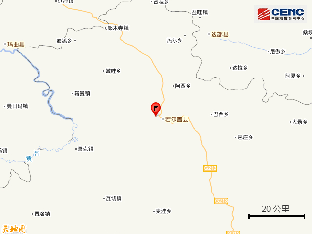 震中简介:若尔盖县隶属于四川省阿坝藏族羌族自治州,系四川通往西北省区的北大门,与甘肃省4县接壤,黄河与长江分水岭将其划为东西两部。若尔盖常年无夏,矿产种类丰富,泥炭资源极为丰富。著名的若尔盖湿地位于其境内。该县面积10620平方公里,共辖4镇13乡,2015年人口7.8万人,2015年GDP达15亿元。