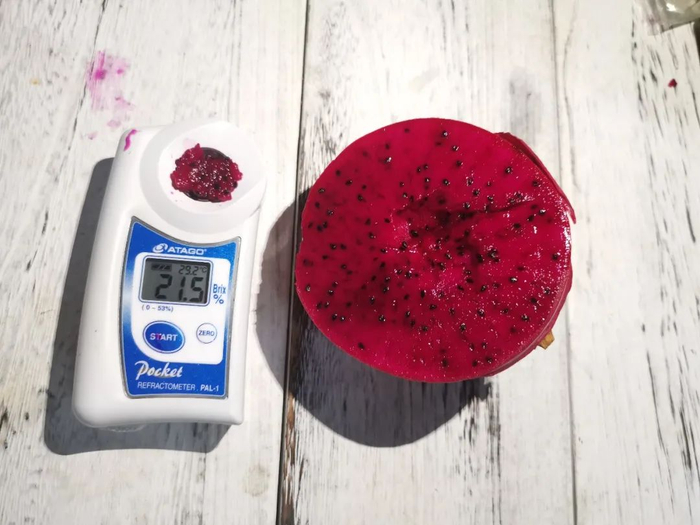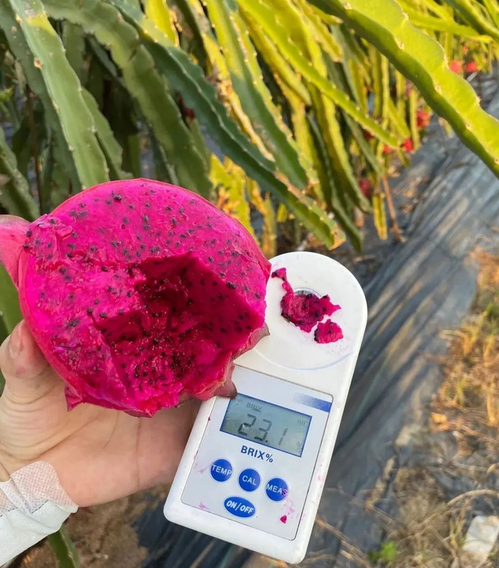 用测糖仪检测竟然达21°,比新疆哈密瓜还甜,你只要吃上一口,就再也不会说红心火龙果味道寡淡了!