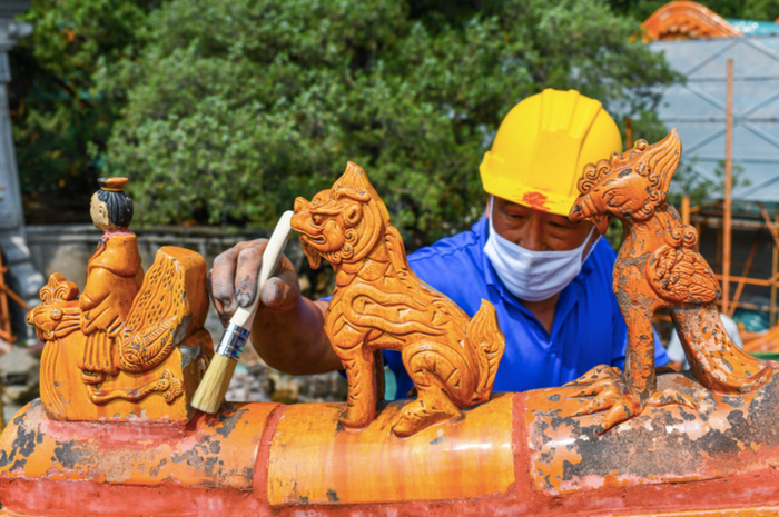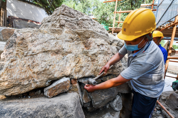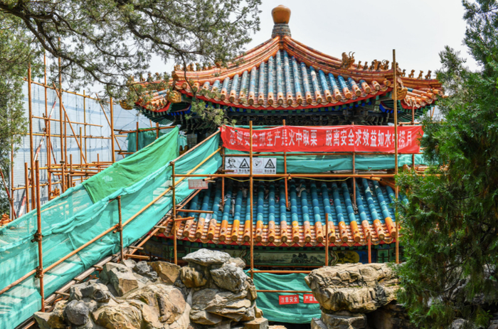 炎炎烈日下,工人这样在颐和园修古建