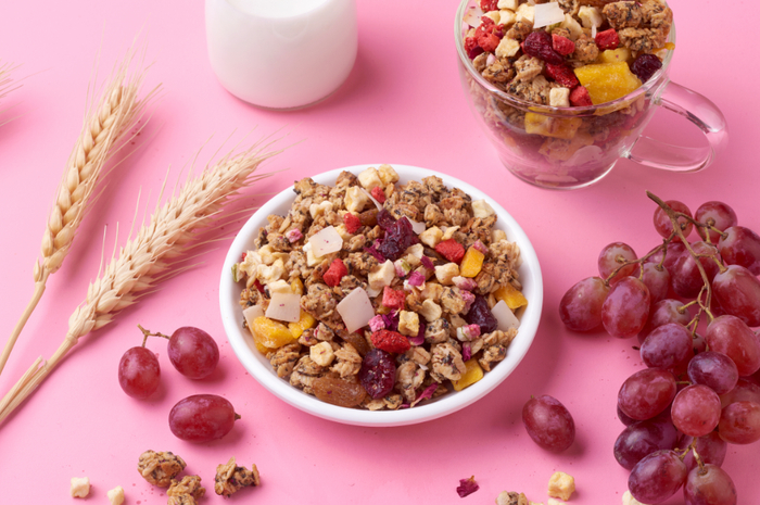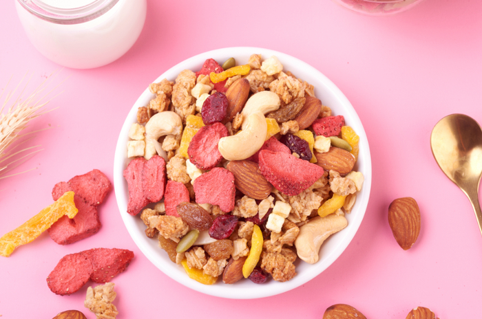 主料:燕麦脆,水果干,坚果仁,椰子脆片