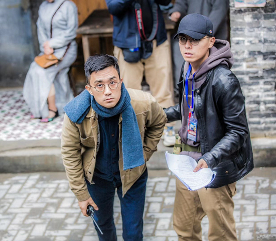 田里(左一)在拍摄《河神2》期间。
