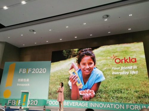 FBIF论坛上,Orkla集团在大中华区的市场销售负责人——赵静雅女士,分享了Orkla集团在环保原材料、环保包装以及可持续发展方向的创新。